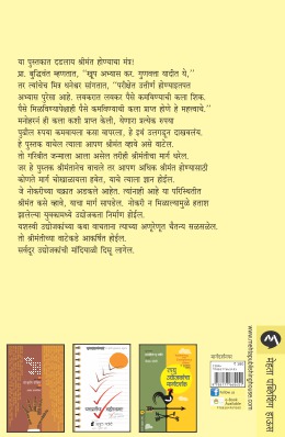 या पुस्तकात दडलाय श्रीमंत होण्याचा मंत्र! प्रा.बुद्धिवंत म्हणतात, ``खूप अभ्यास कर. गुणवत्ता यादीत ये," तर त्यांचेच धनेश्वर सांगतात, " परीक्षेत उत्तीर्ण होण्याइतपत अभ्यास पुरेसा आहे. लवकरात लवकर पैसे कमविण्याची कला शिक. पैसे मिळविण्यापेक्षाही पैसे कमविण्याची कला प्राप्त होणे हे महत्वाचे." मनोहरनं ही कला कशी प्राप्त केली, येणारा प्रत्येक रुपया पुढील रुपया कमवायला कसा वापरला, हे इथं उलगडून दाखवलंय. हे पुस्तक वाचेल त्याला आपण श्रीमंत व्हावे असे वाटेल. तो गरिबीतजन्माला आला असेल तरीही श्रीमंतीचा मार्ग धरेल. जर हे पुस्तक श्रीमंतानेच वाचले तर आपण अधिक श्रीमंत होण्यासाठी कोणते मार्ग चोखाळायला हवेत, याचे त्याला ज्ञान होईल. जे नोकरीच्या चक्रात अडकले आहेत.त्यांनाही आहे या परिस्थितीतश्रीमंत कसे व्हावे, याचा मार्ग सापडेल. नोकरी ण मिळाल्यामुळे हताश झालेल्या युवकामध्ये उद्योजकता निर्माण होईल. यशस्वी उद्योजकांच्या कथा वाचताना त्याच्या अणूरेणूत चैतन्य सळसळेल. तो श्रीमंतीच्या वाटेकडे आकर्षित होईल. सर्वदूर उद्योजकांची मांदियाळी दिसू लागेल.